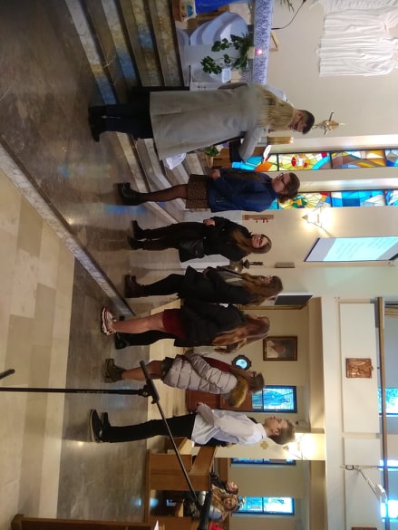 Ważnym momentem „zatrzymania się” był dla naszej społeczności ostatni dzień, jaki spędziliśmy w szkole przed przerwą świąteczną. Zaczął się wspólną Eucharystią, podczas której mogliśmy ofiarować Bogu owoce naszych adwentowych postanowień, prosić o potrzebne łaski dla tych, którzy tego wsparcia bardzo potrzebują oraz polecić Mu wszystko to, co jest dla nas trudne… Po Mszy świętej śpiewaliśmy wspólnie kolędy. Przy ich wtórze przedstawiciele klas odebrali z rąk ks. Karola pobłogosławione opłatki, którymi później, podczas klasowych wigilii, dzieliliśmy się życząc sobie wzajemnie tego, co najlepsze.