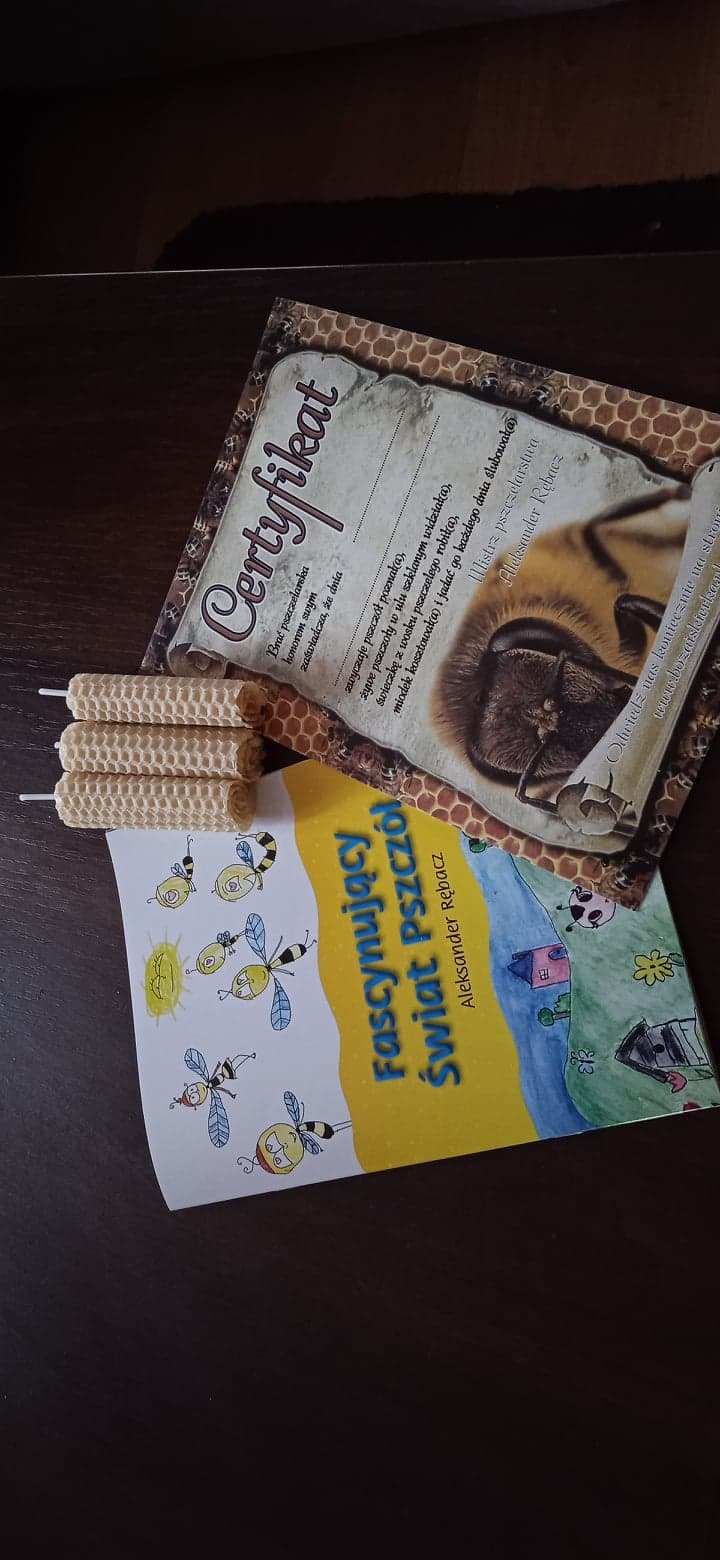 Każdy uczestnik otrzymał w prezencie wykonaną przez siebie świecę, książeczkę „Fascynujący świat pszczół” oraz certyfikat uczestnictwa w warsztatach, jako potwierdzenie zdobytej wiedzy.
