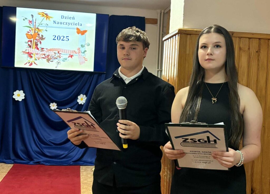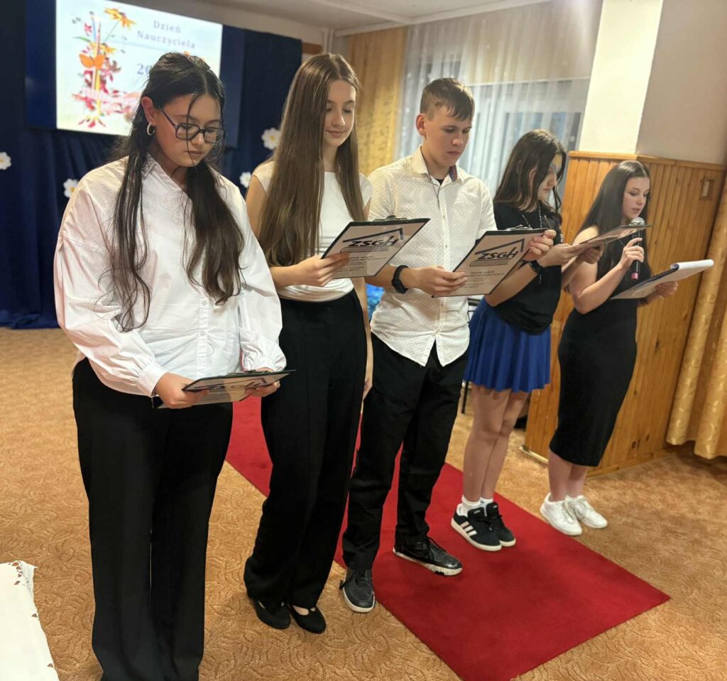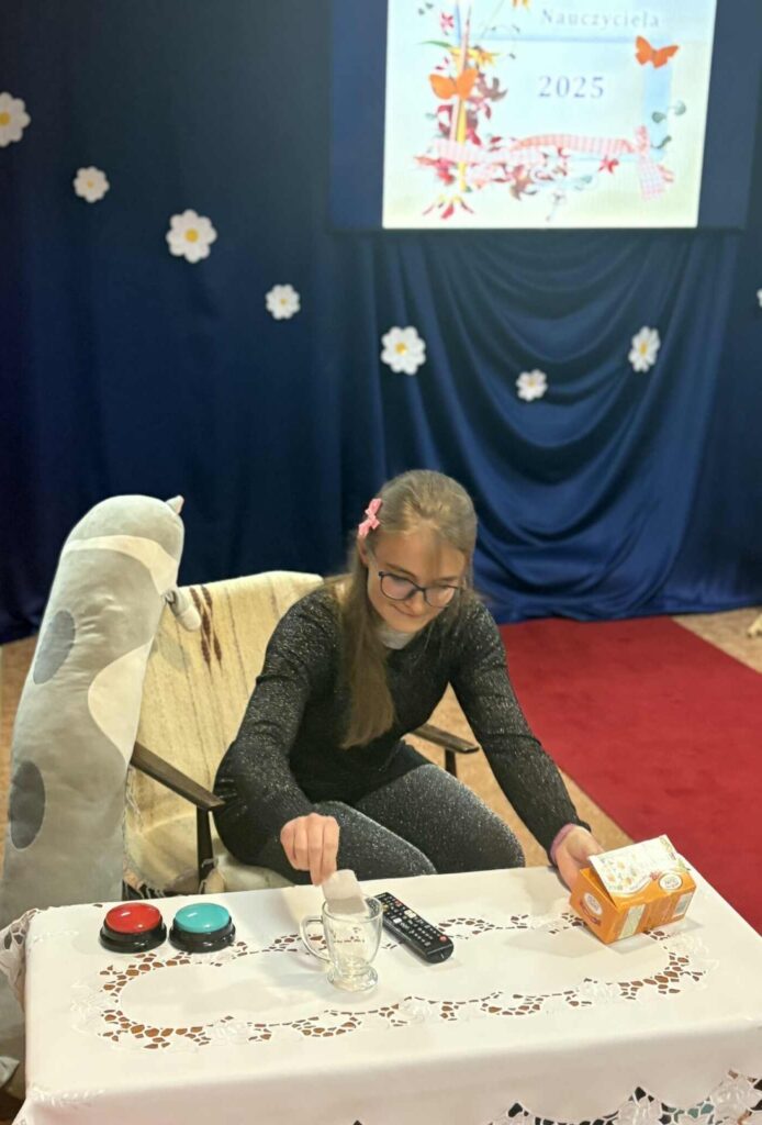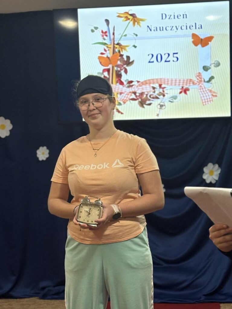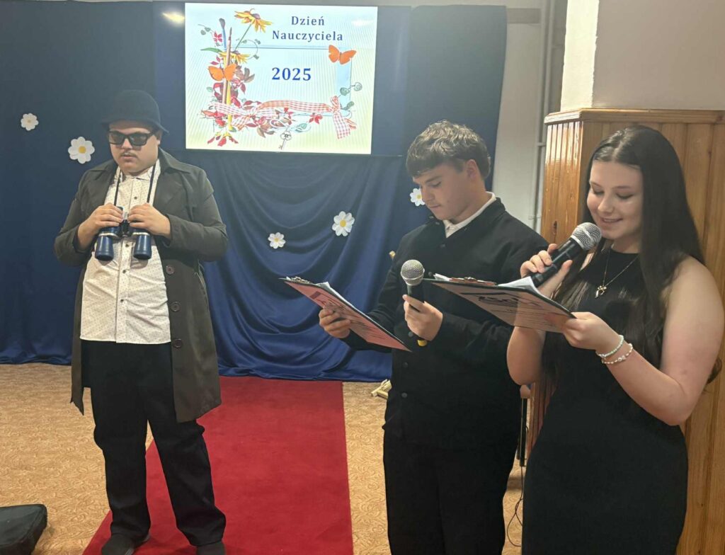 Również w naszym internacie świętowaliśmy Dzień Edukacji Narodowej. Z tej okazji wychowankowie przygotowali niecodzienny pokaz mody, podczas którego zaprezentowane zostały stroje charakterystyczne dla wychowawców w różnych rolach i sytuacjach. Oglądaliśmy tajemniczego Wychowawcę Szpiega, rządzącego Wychowawcę Głównego, czuwającego nad wychowankami nocną porą Wychowawcę Nocnego, był też elegancki Wychowawca na Balu i zrelaksowany Wychowawca w Domu po Pracy, a także gotowy na każdą przygodę Wychowawca na Wakacjach. Gra naszych wspaniałych aktorów, rymowane opisy a do tego odpowiednia muzyka sprawiły, że wszyscy dobrze się bawili. Spotkanie uświetnił też układ taneczny wykonany przez Anię i Karolinę. Na zakończenie młodzież przekazała wychowawcom podziękowania za codzienną pracę, cierpliwość, wsparcie i atmosferę, jaką tworzą, sprawiając, że internat staje się drugim domem.