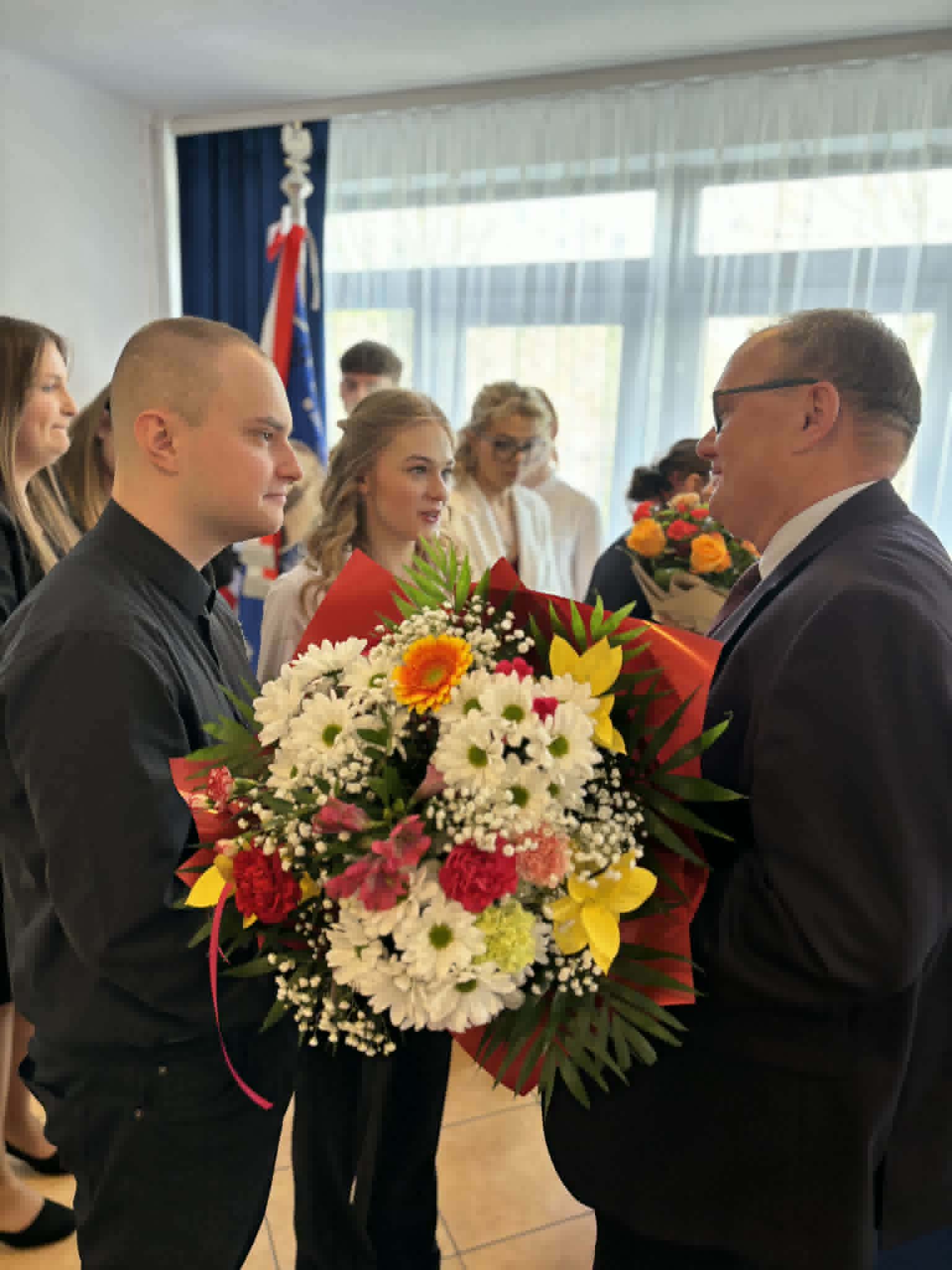 Uroczystość rozpoczęła się od części oficjalnej, podczas której nastąpiło uroczyste przekazanie sztandaru szkoły. Maturzyści z klas piątych z godnością powierzyli opiekę nad tym najważniejszym symbolem nowym członkom pocztu sztandarowego z klasy czwartej, przekazując im tym samym odpowiedzialność za godne reprezentowanie szkoły. Następnie głos zabrał dyrektor, pan Jan Barsznica, który w swoim przemówieniu pogratulował uczniom wytrwałości i życzył sukcesów podczas nadchodzących egzaminów, podkreślając, że drzwi naszej szkoły zawsze pozostaną dla nich otwarte. Rozdane zostały również nagrody za bardzo dobre wyniki w nauce oraz wysokie lokaty w konkursach. W uroczystości brali udział rodzice absolwentów oraz przedstawiciele Rady Rodziców.