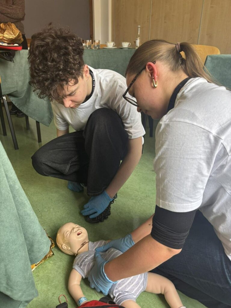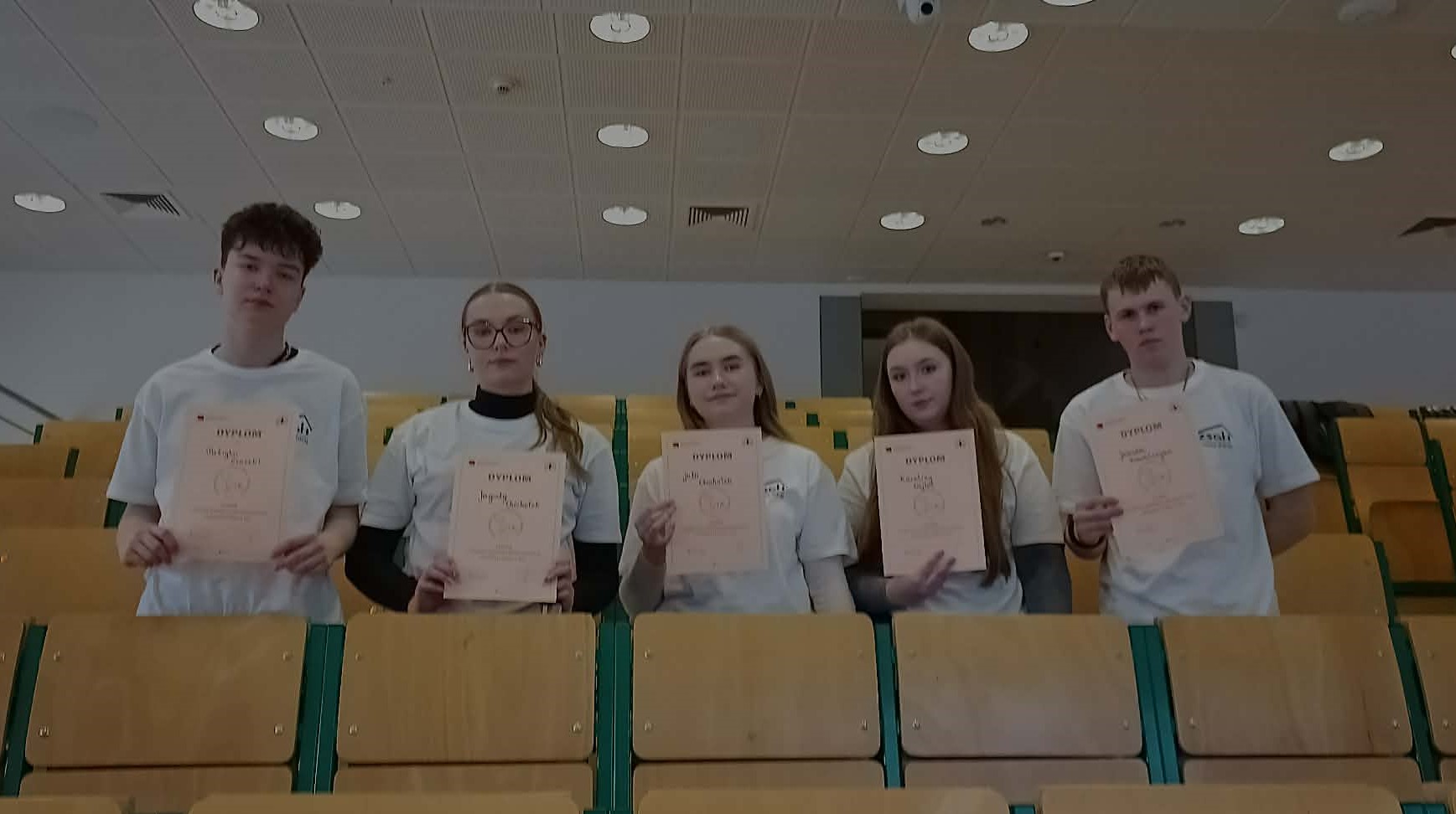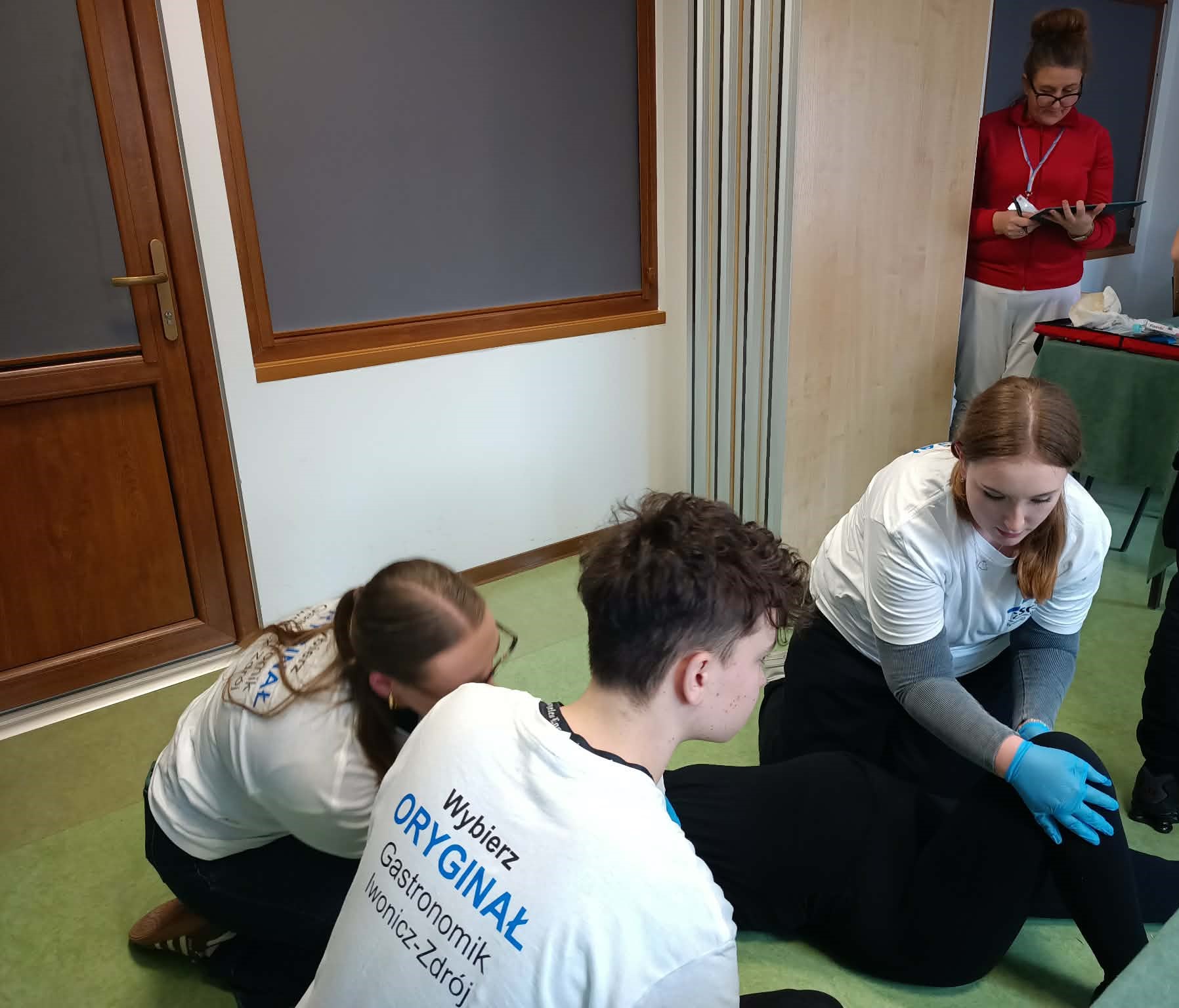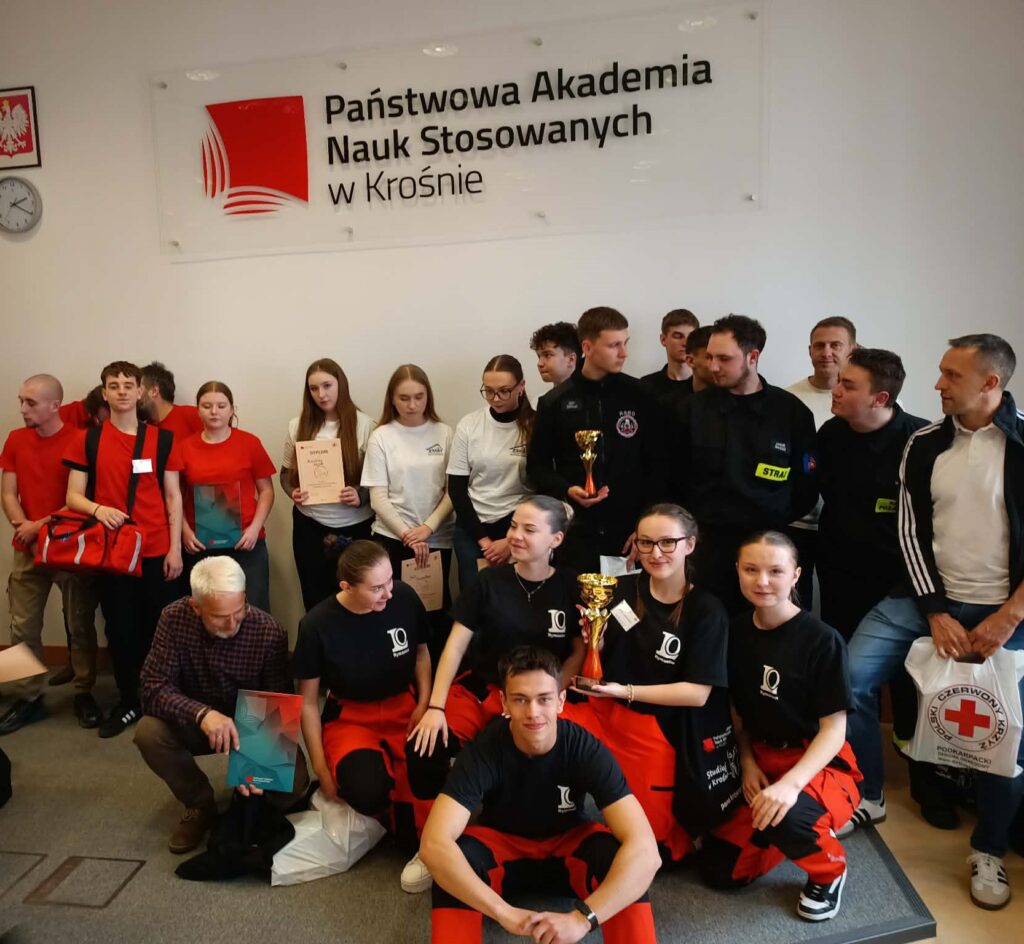 W Centrum Symulacji Medycznej przy Państwowej Akademii Nauk Stosowanych w Krośnie 17 kwietnia odbyły się Mistrzostwa Pierwszej Pomocy dla uczniów szkół ponadpodstawowych. Naszą szkołę reprezentowała drużyna w składzie: Jagoda i Julia Chochołek, Karolina Wojtoń, Patryk Gruszka i Jakub Kowalczyk. Uczestnicy, mieli okazję sprawdzić zarówno wiedzę teoretyczną, jak i umiejętności praktyczne w warunkach zbliżonych do rzeczywistych sytuacji zagrożenia życia i zdrowia. Była więc symulacja wypadku komunikacyjnego z udziałem obywatela Wielkiej Brytanii, wypadku w górach, pożaru, urazu podczas koszenia trawy oraz sytuacja w restauracji, gdzie doszło do zawału serca i ataku padaczki. Każdy przypadek wymagał szybkiego rozeznania, udzielenia pierwszej pomocy i skutecznej współpracy zespołowej. Choć nasza drużyna nie stanęła na podium, udział w zawodach był dla młodych cennym doświadczeniem, gdyż dawał możliwość rozwijania poczucia odpowiedzialności za innych oraz budowania pewności siebie w niesieniu pomocy.