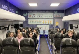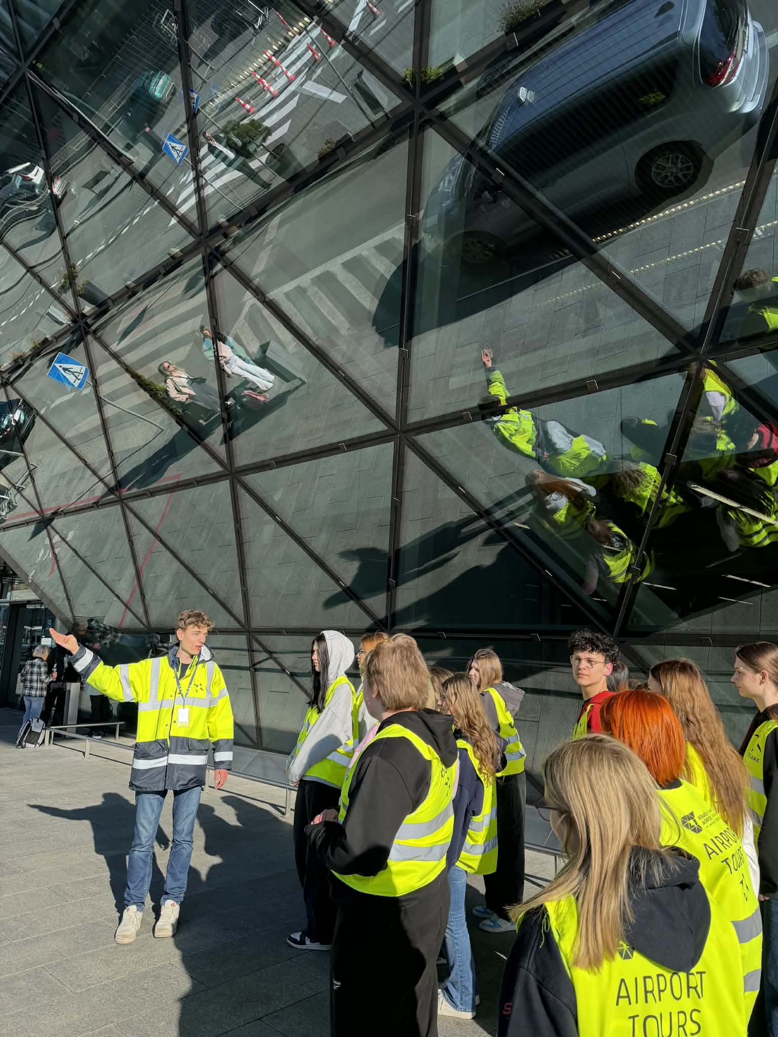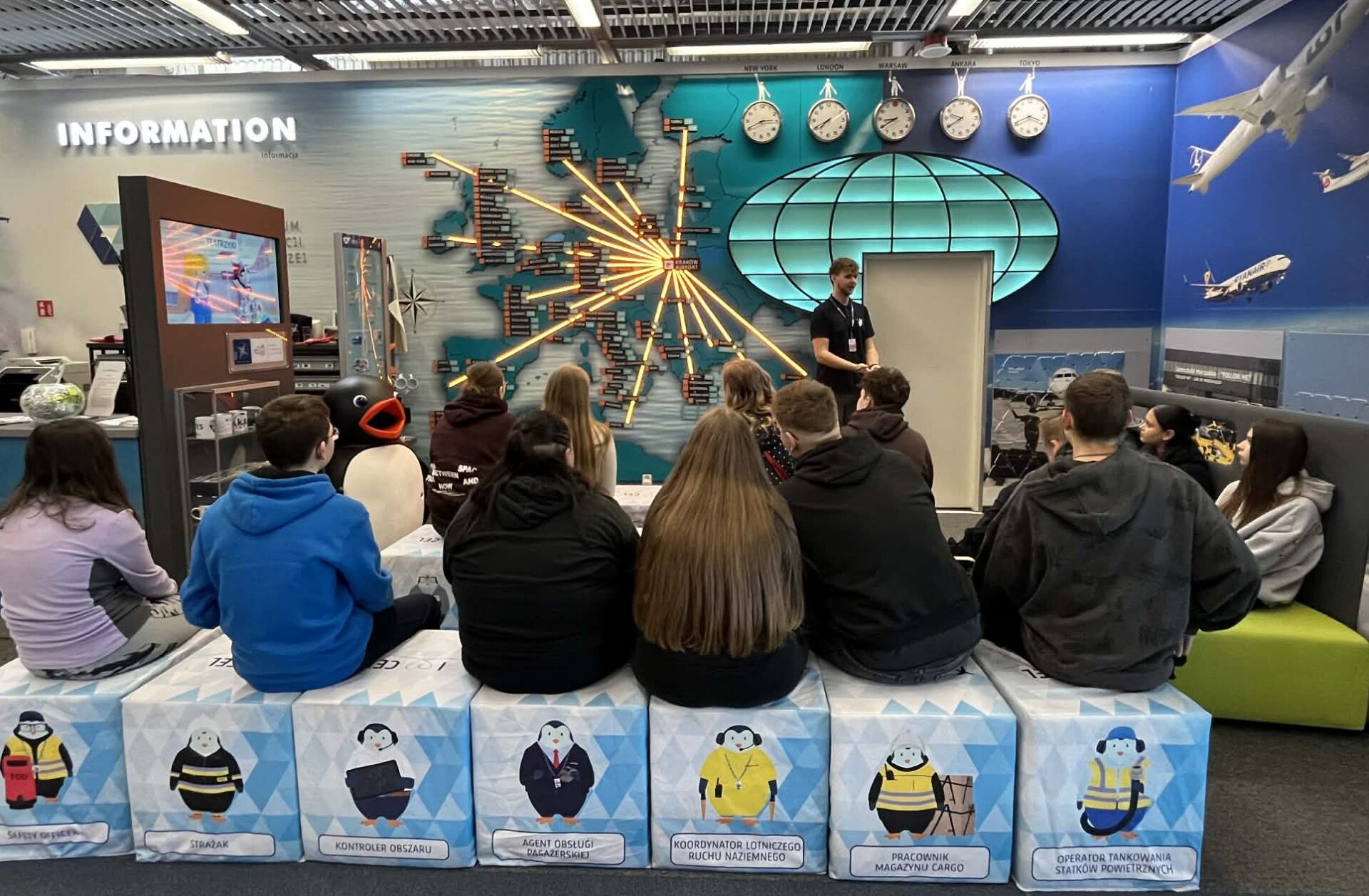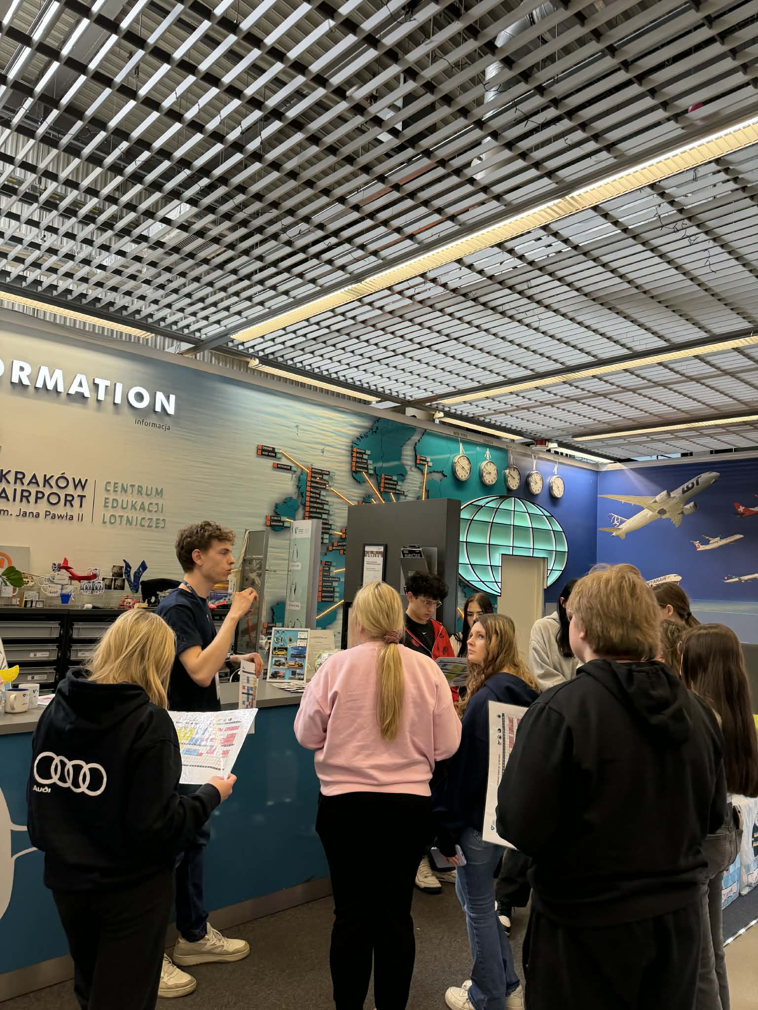 Już o 8:00 wystartowały zajęcia w Centrum Edukacji Lotniczej na lotnisku w Krakowie. Młodzież poznała nie tylko funkcjonowanie lotniska, ale także sporo dowiedziała się na temat podróżowania samolotem. Wyjeżdżający na staż do Grecji uczniowie już wiedzą, że nie wszystkie pamiątki można legalnie przewieźć do Polski ze względu na konwencję waszyngtońską CITES.